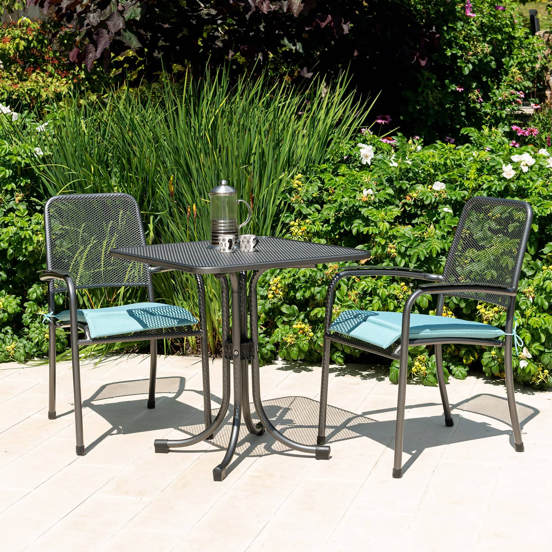 The Alexander Rose Portofino Tea for Two Set with Armchairs is a charming garden or patio set. Its small size makes it ideal if space is at a premium such as on a balcony or small patio. The contemporary Portofino range is made from fine powder coated, tubular steel & wire mesh. The mesh is fused to the frame with great precision producing a soft blend between the two materials.Ā