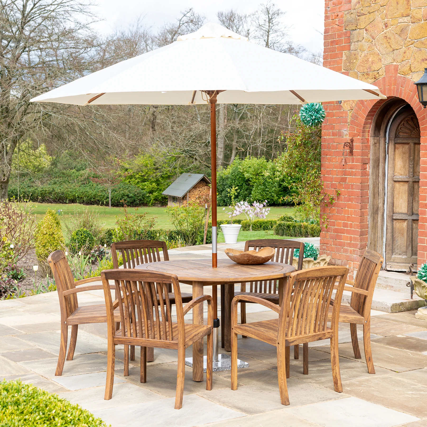 The durability of this timber is comparable to that of teak – so you can be confident it’ll last you many years to come, even with the good old English weather. You can use our Timber Treatment to help retain the colour and for protection from food and drink stains, as well as water ingress.